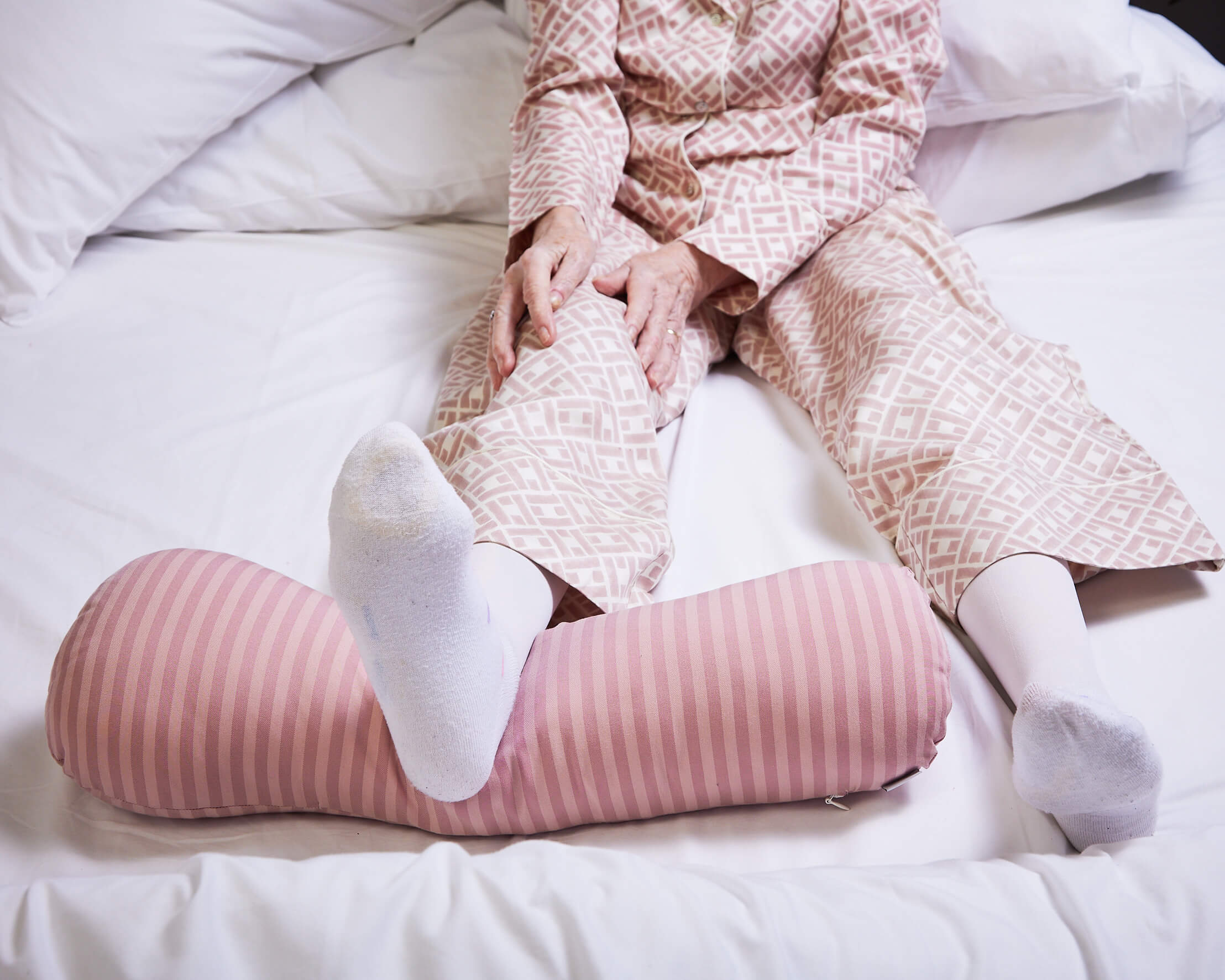 I have an old L4/5 disc injury and prefer to sleep on my side. I found that this sometimes results in rotation of the hips as one leg tends to falls forward, particularly during periods of deep sleep. This would result in extra stiffness in the lower back the following morning. It got to the point where I was waking up due to be hyperaware of the potential issue and tried normal cushions to address it. However, the cushion would often move or fall out of the bed with me searching for it multiple times a night.